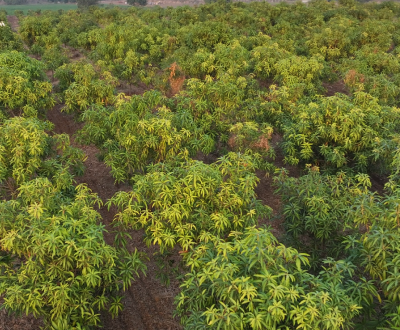 Mature Kesar orchard already producing export-grade mangoes annually.
